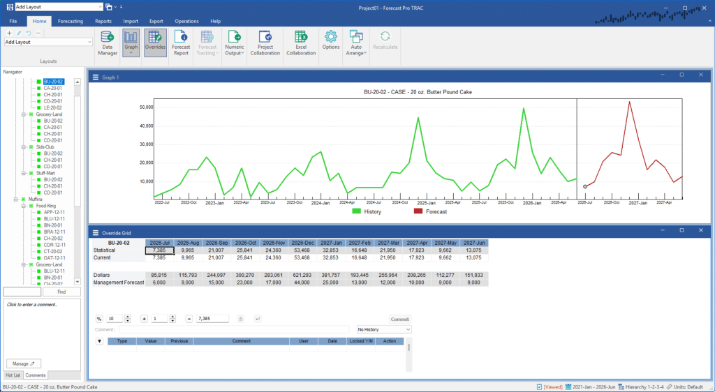 At times it may be useful to have visibility to external information while working with the forecasts. In this example, we’ll bring in some forecasts that were generated outside of Forecast Pro.